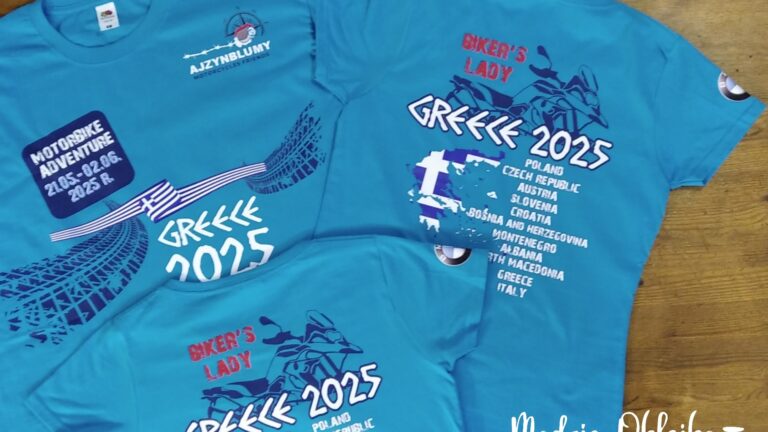 Mówią, że do odważnych świat należy, zwłaszcza w taką pogodę gdy jest plan siąść na moto i przejechać kilka tysięcy kilometrów 🙂 Koszulki dla ekipy, która na dniach wybiera się na podbój Grecji. Szerokości dla was i dziękuję za zaufanie!