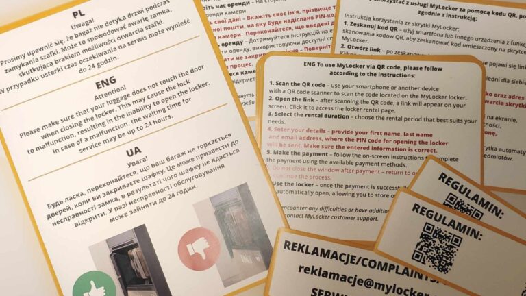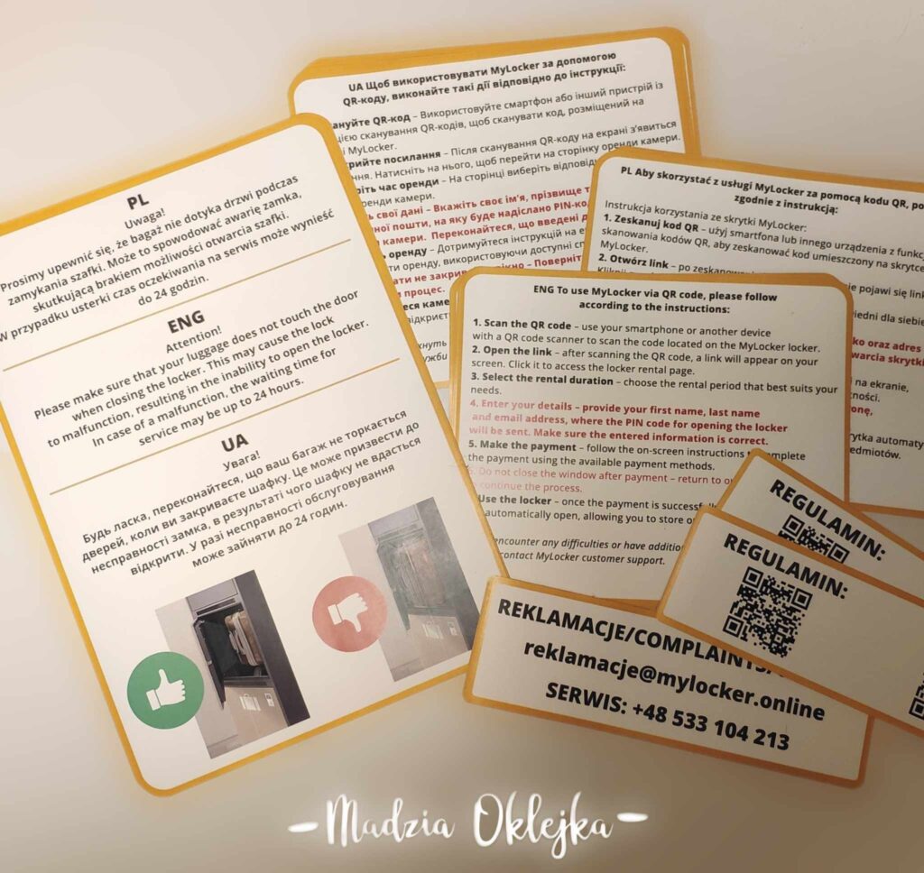 Trzyjęzyczne naklejki do szafek przechowujących bagaże na dworcu w Katowicach, przepraszam za jakość zdjęcia 🙂 Tak wygląda praca po godzinach 🙂