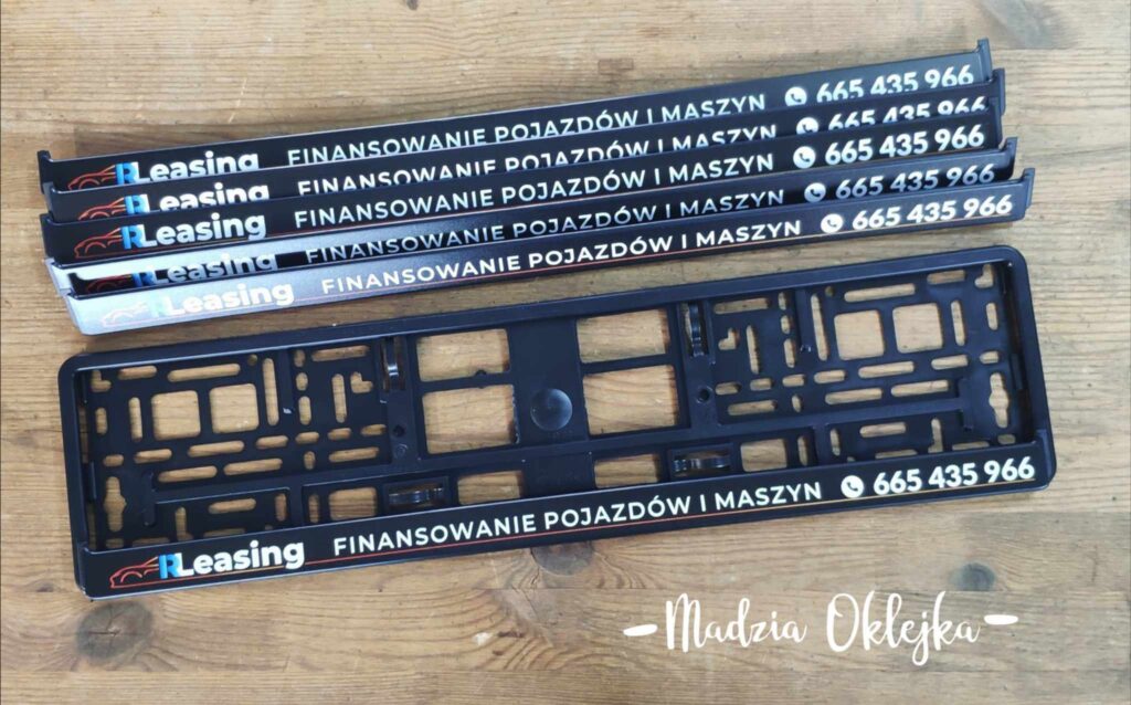 Ramki rejestracyjne wykonane nadrukiem UV dla firmy RLeasing.